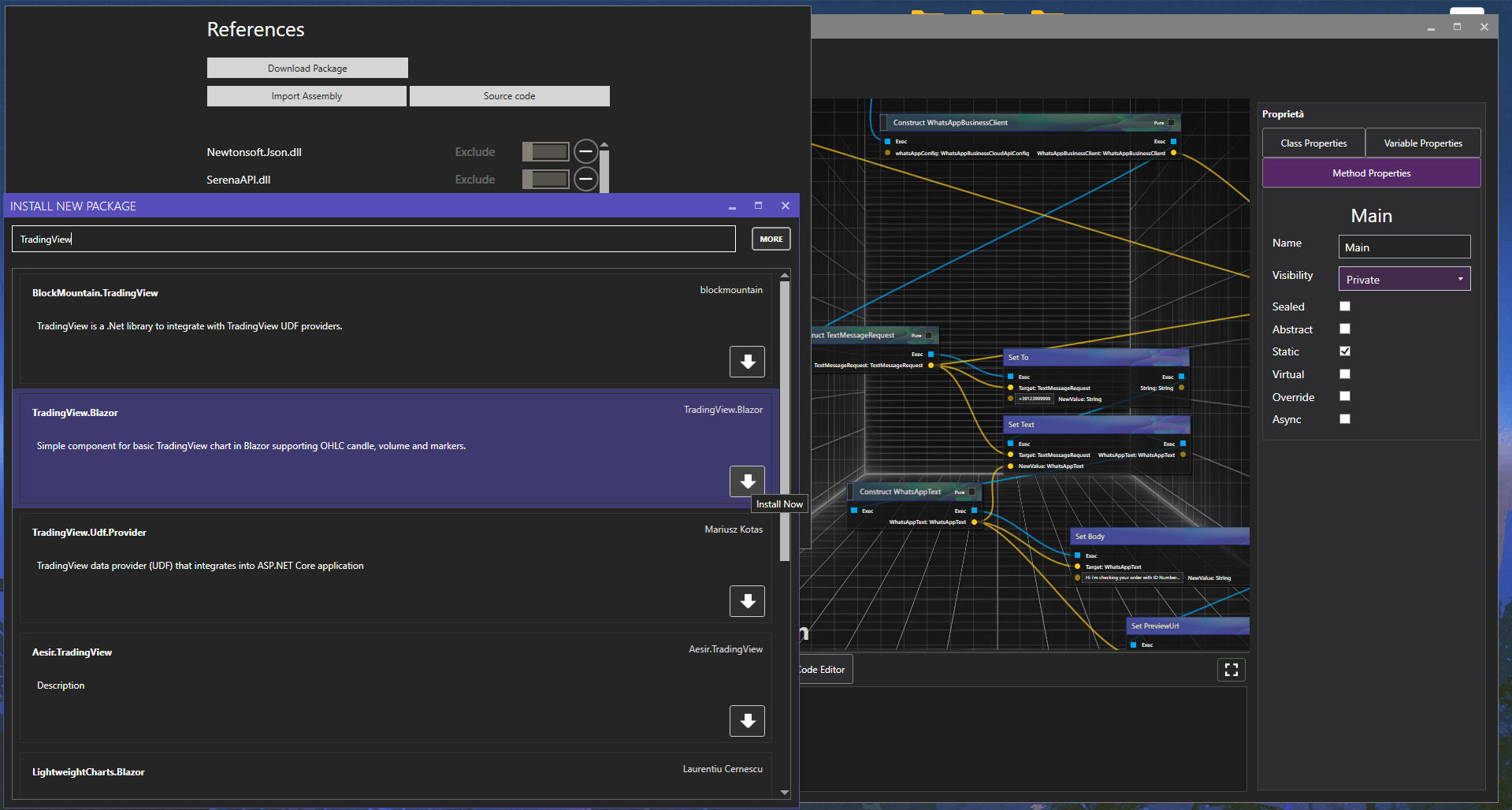 Thanks to NuGet packages and plugin support, you can connect Reasoning Builder with thousands of popular tools, from TradingView and Twitter to cloud databases and local apps.